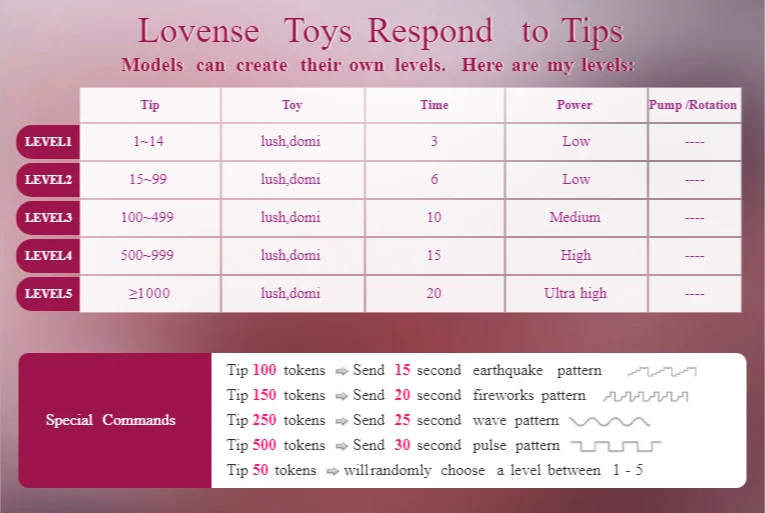 แอนัล, อาเฮะกาโอะ, ตีก้น, ใช้นิ้ว, ดิลโด้หรือไวเบรเตอร์, ของเล่นแอนัล, เซ็กส์ทอย, ดีปโทรต, ทเวิร์ก, ระบำเปลื้องผ้า, แตกใน, คุยเรื่องลามก, ช่วยตัวเอง, เต้นยั่ว, ฮาร์ดคอร์, ส้นสูง, โบลว์จ๊อบ, โรลเพลย์